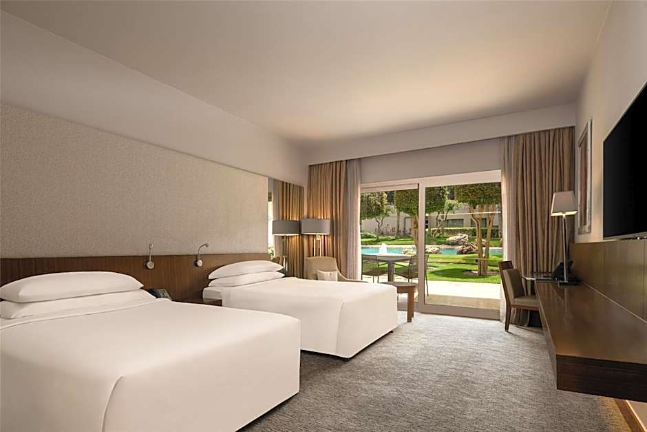 Deluxe Twin Room, terrace, Poolview/Lakeview is 560 square feet and includes 2 single beds 80-130 width plus terrace, extra beds on demand, satellite tv , ironing set, and slippers and has a Disability-friendly bathroom.